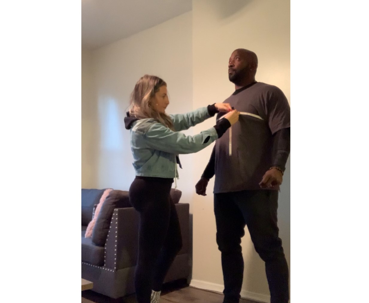 Be sure to leave about one fingers worth of space behind the measuring tape and between the body. Focus on wrapping the tape around the area of the body being measured and hold it in place. Generally, you’ll want tape to feel snug on you, but not tight. You can drastically change measurements by holding the tape too tight. In tailoring, an inch is a mile.
